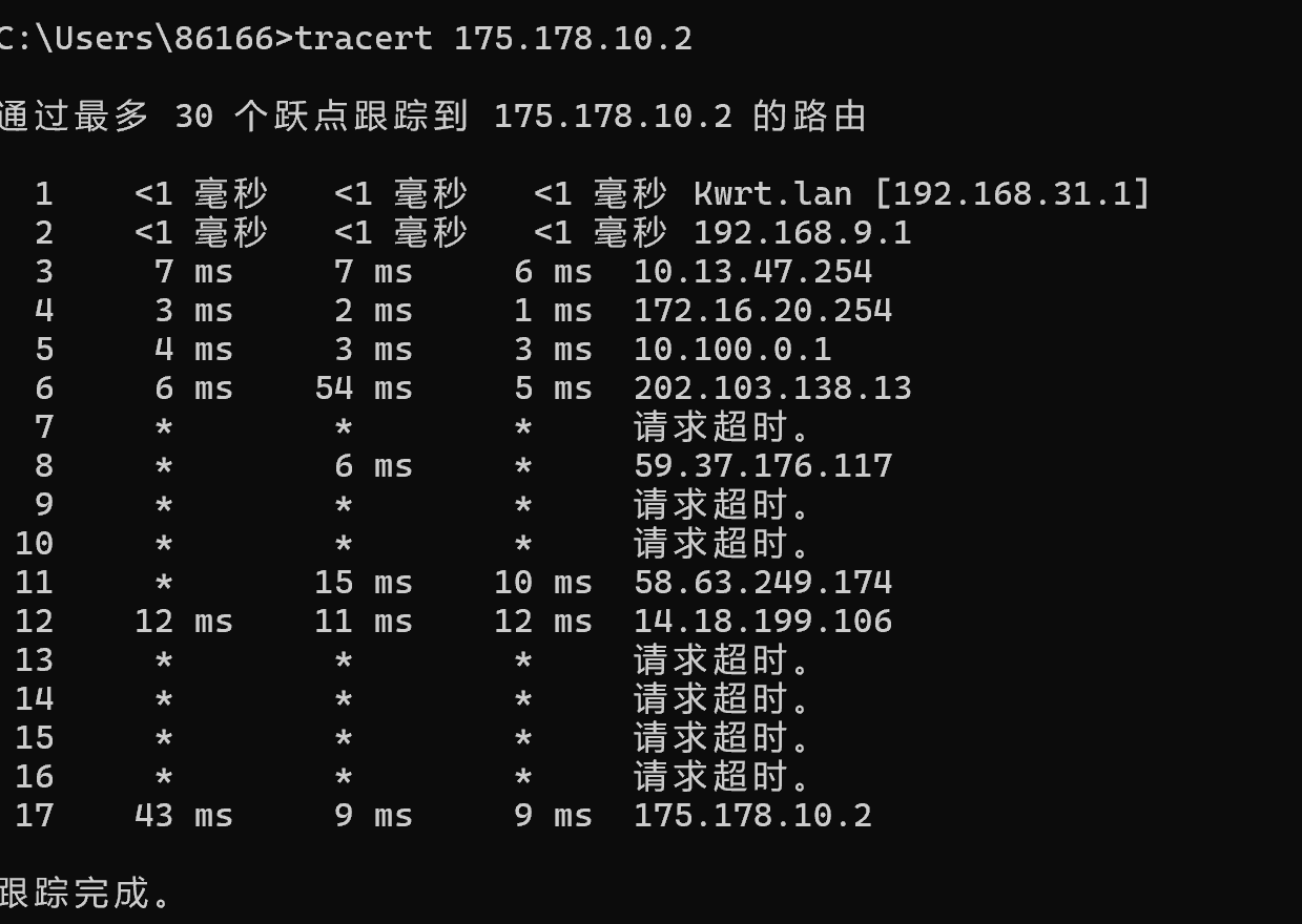 通过as查询 不难看出学校主路由是通过AS134773出口的电信专线,而且tracert发现从学校交换机出口后直接上了202开头的163骨干网,并且到广州腾讯延时仅有个位数(国内好像还上cn2了??)